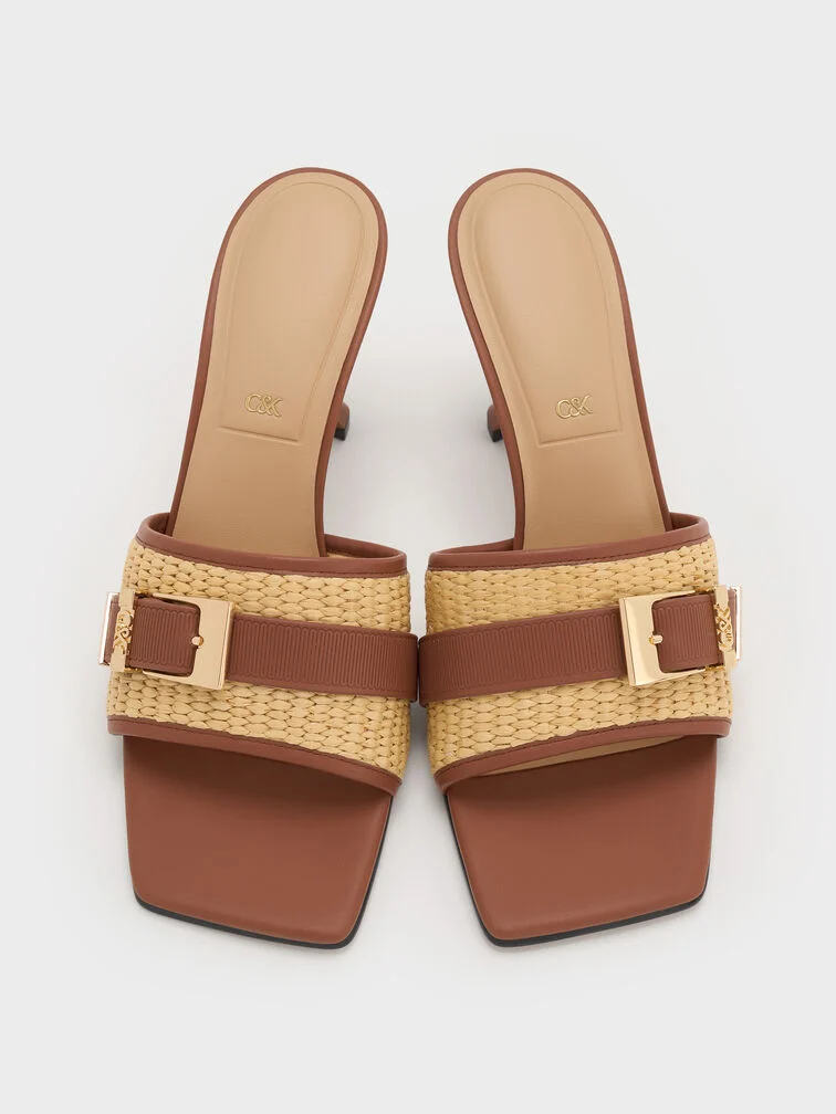 Las Whitney Tierra fusionan cuero marrón y tejido de rafia en un equilibrio perfecto entre elegancia artesanal y diseño contemporáneo.